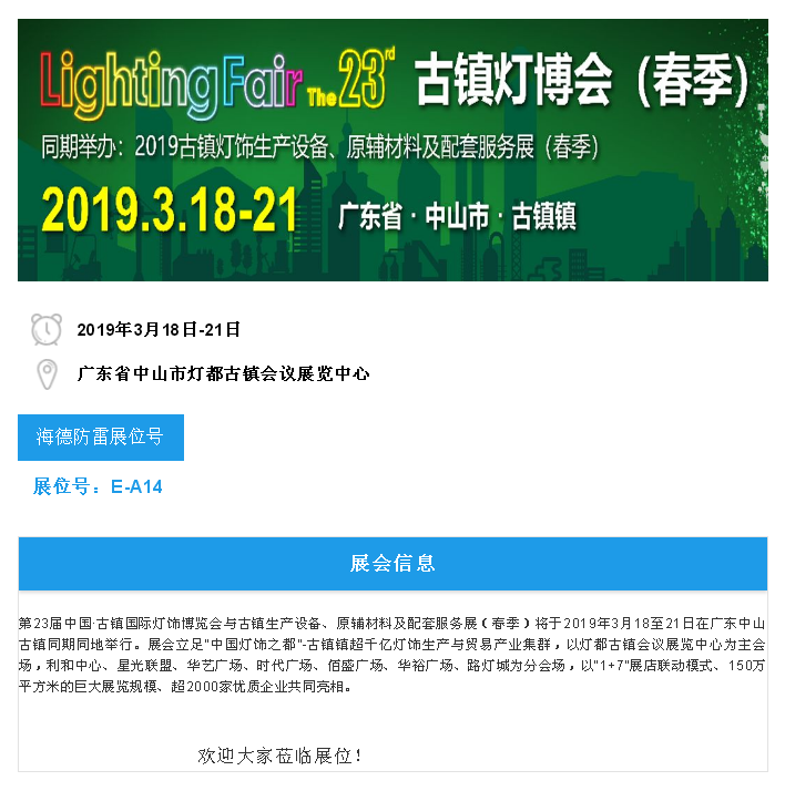 我司將參加第23屆中山燈博會(春季)