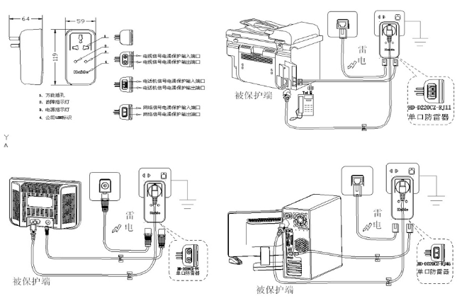 避雷器先插入供電插座,用電設(shè)備再?gòu)谋芾灼鞑蹇兹‰姡?qǐng)確保墻壁插座的地線(xiàn)有良好的接地(推薦接地電阻≤4Ω)。