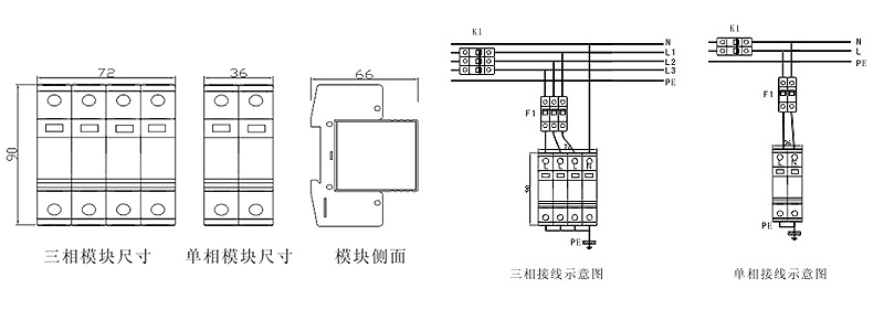 電源相線(L)、零線(N)分別接入電涌保護(hù)器相應(yīng)接線端子,保證牢固及可靠,將避雷器接地端與防雷地線(推薦接地電阻≤4Ω)作良好電氣連接。