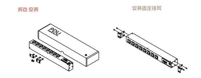 1. 安裝非常簡便,首先將 iSPPDU 左右掛耳調(diào)整好安裝角度, 擰上配套螺絲,即可將iSPPDU 固定牢固。
